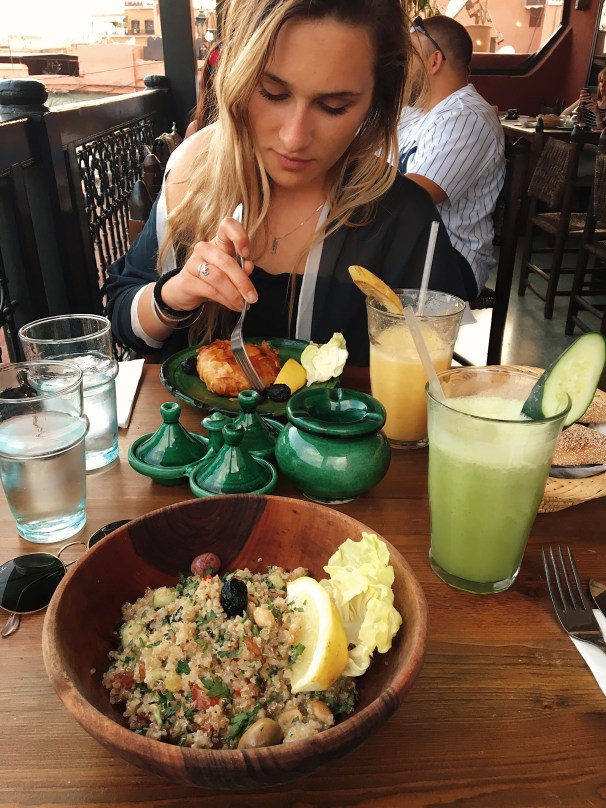 Zeitoun Cafe sits in the center of the Jemma El fna square. It was our personal favorite to watch the sunset while enjoying a traditional Moroccan dinner. The menu encompasses a variety of local dishes. I recommend trying the fresh fruit juice along with your meal. As is the case with most restaurants in Marrakech, the staff will seat you at the best available table if you let them know you will be having dinner.